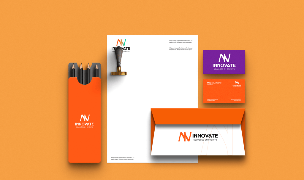 O projeto de identidade visual da Innovate, uma empresa de soluções de créditos. A paleta de cores mescla tons suaves e vibrantes, evocando diversidade e alegria. O logotipo apresenta linhas suaves e orgânicas, transmitindo harmonia e conexão com a natureza. Os elementos visuais remetem à diversidade e popularidade, conceitos que se assemelha com a empresa